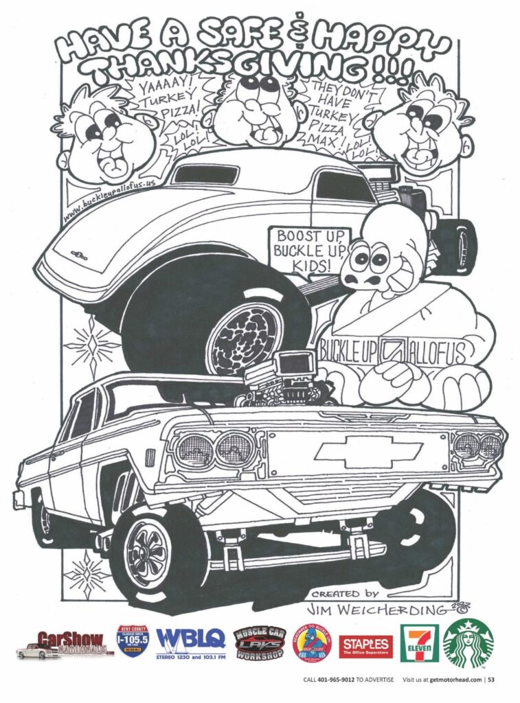 What started out years ago as a simple idea to try and keep Kids Safer in their Family Vehicles has evolved into something much bigger than first imagined. Being a Cartoonist and Artist has been trying at times, especially earlier in my life, because I wasn’t certain what direction I wanted to go in regarding my talents and creative concepts. I was a big Classic Car and Truck Enthusiast and Owned Plenty Of Cool Muscle Cars and Big Trucks over the years. In my twenties I started attending mini-Car Shows. Back then they were just starting out here in New England with pockets of small clubs hosting Car Shows & Cruise Nights. I owned some real nice muscle cars including plenty of Pontiac GTO’s back in the day and my friends would invite me to hang out with them at these small gatherings and talk about cars and trucks. Most of the time, Little Kids would show up with their parents to check out our rides. I was drawing some cool hot rods and muscle cars coloring pages to Pass Out to the kids and figured I could also help remind them to be safer while riding in their own vehicles. Buckleupallofus was born. I would illustrate cool Bucky Hot Rod & Muscle Car Coloring Pages and go to the nearest copy store to make a couple hundred copies and started passing them out at these Car Show & Cruise Night gatherings. I Created hand painted Bucky Cruisin’ Safety Billboards to Display at these venues and eventually created Coloring Books and Products for kids to Take Home With Them. Local and community business owners saw what I was doing and offered to help with my printing and travel expenses by paying me Sponsorship money if I added their businesses and companies onto all of my Handouts to Kids & Parents. Today, they are all included in my Bucky Safety Coloring Posters and Coloring Books I Pass Out at more than 100 Classic Car Shows & Cruise Nights Across New England. And now, I have a Giant Bucky Balloon Attraction and the demand for Appearances is at an all time high. More Bucky Products and Print Formats Are passed out to Kids & Parents and Bucky’s Safety Messages Reach many more Kids today than ever before. Not only across New England, but also across the USA. More Classic Car & Truck Clubs along with Hot Rod Clubs and Car Show & Cruise Night Hosts are Reaching out to Help Bucky’s Safety Messages go to Kids in their own communities, towns, cities and states Nationwide. The most important thing we can do as a Group of Automotive Enthusiasts is to Reach Kids, Teens and Adults about Traffic Safety. And there are Millions Of Us Out There. More than 120,000,000 to be close to exact. Bucky has evolved from being a Single Page Coloring Sheet passed out to Kids at local car enthusiasts gatherings, more than a decade ago, to becoming a huge in-demand Kids & Family Safety Events Series of Events Featuring Numerous Corporate America, Company and Business Sponsored Products, Printed Formats, Banners, Publications and a Giant Balloon Reminding Kids to Boost Up! Buckle Up! and Parents Properly Restrain Kids in Car Seats. Keep ‘em Buckled Up and Remember; “Buckleupallofus!”