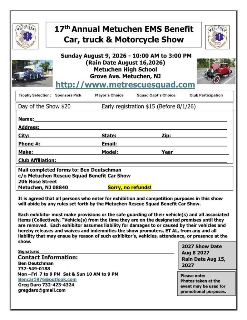 Consider being a Car Registrant, Sponsor or Vendor for our 2026 show!!